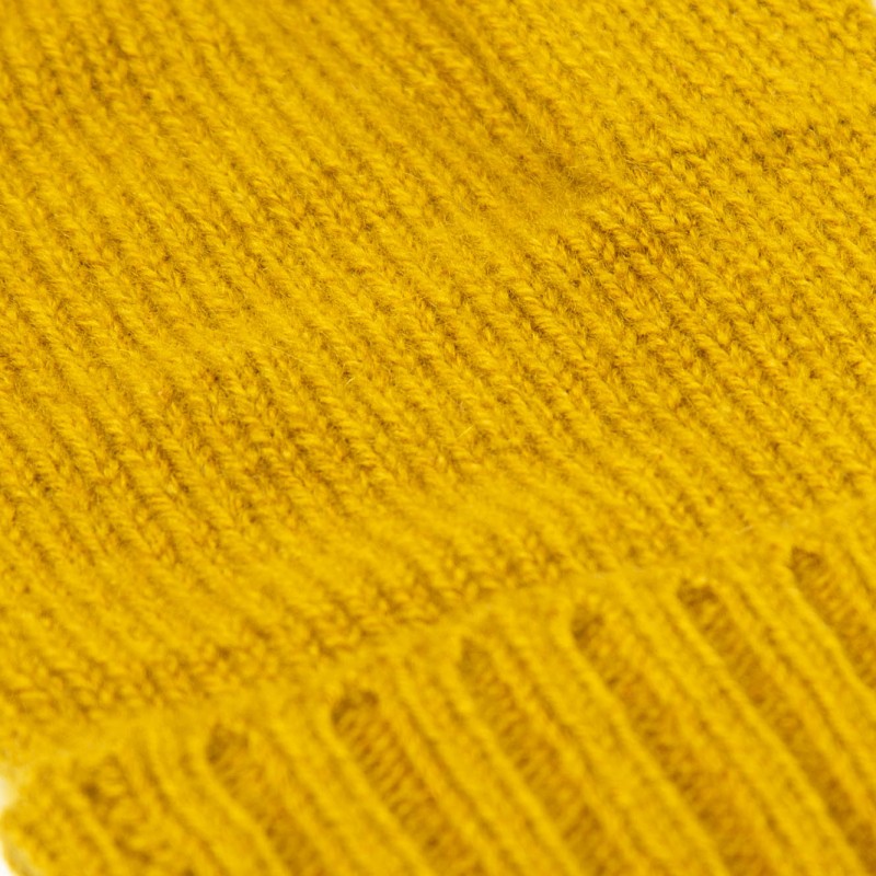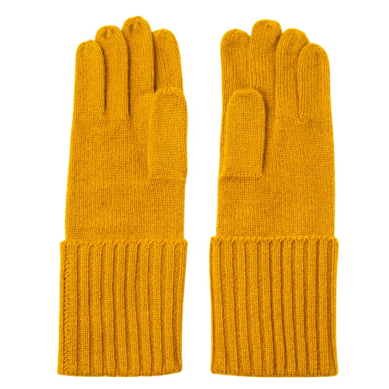 Curryfarbene gestrickte Kaschmir-Handschuhe.