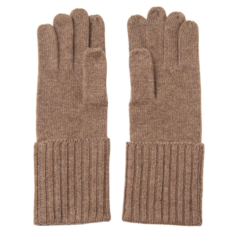 Taupegraue, gestrickte Kaschmir-Handschuhe.