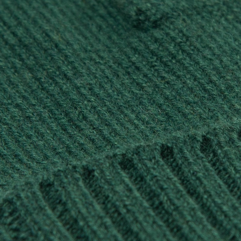 Flaschengrüne, gestrickte Kaschmir-Handschuhe.