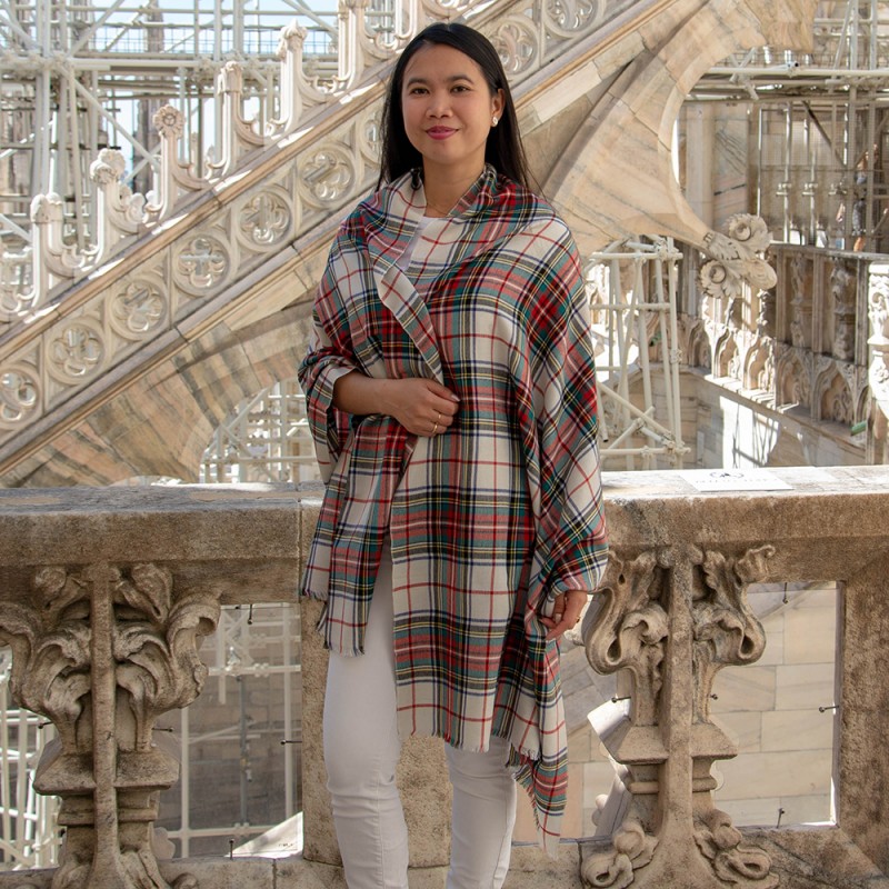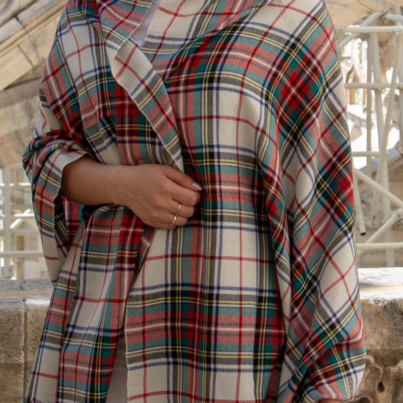Kaschmir/Seide Schal in weißes Schottenkaro.