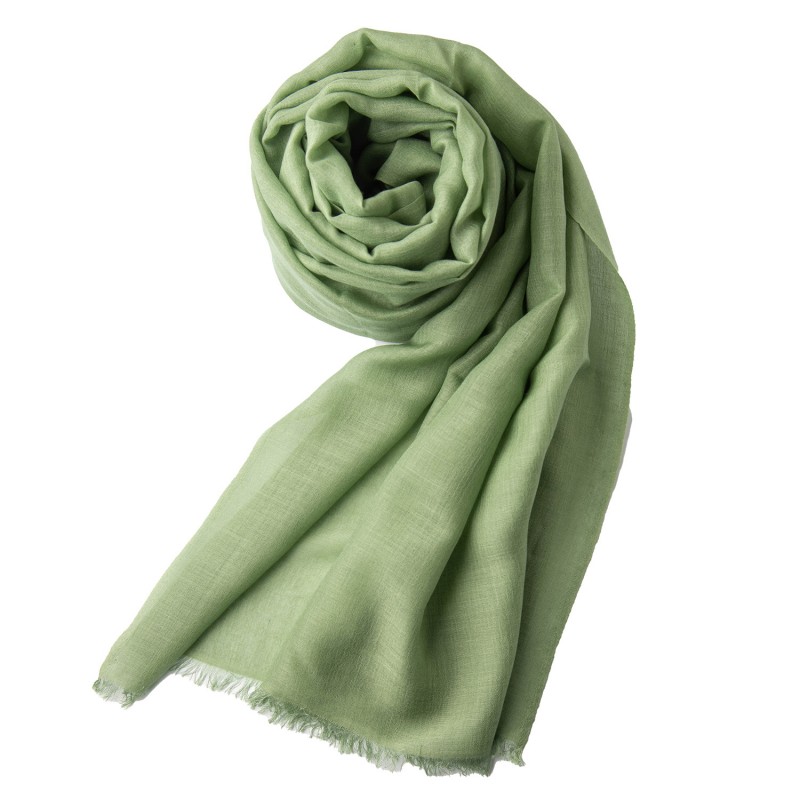 Salbeigrüner Pashmina-Schal aus Kaschmir und Seide. 200 x 90 cm.