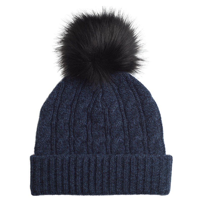 Marineblaue Mütze aus Kaschmir mit Pompon.