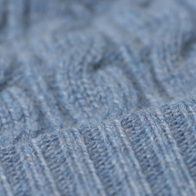 Taubenblaue Mütze aus Kaschmir mit Faux-Fur Pompon.