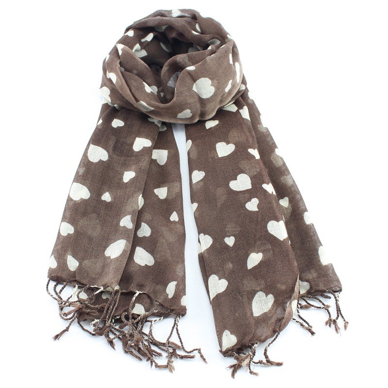 Dieses Design geht mitten ins Herz: Kastanienbraunes Wolltuch mit weißem Herzdruck aus der beliebten Glen Prince-Kollektion. Hochwertig verarbeitet.