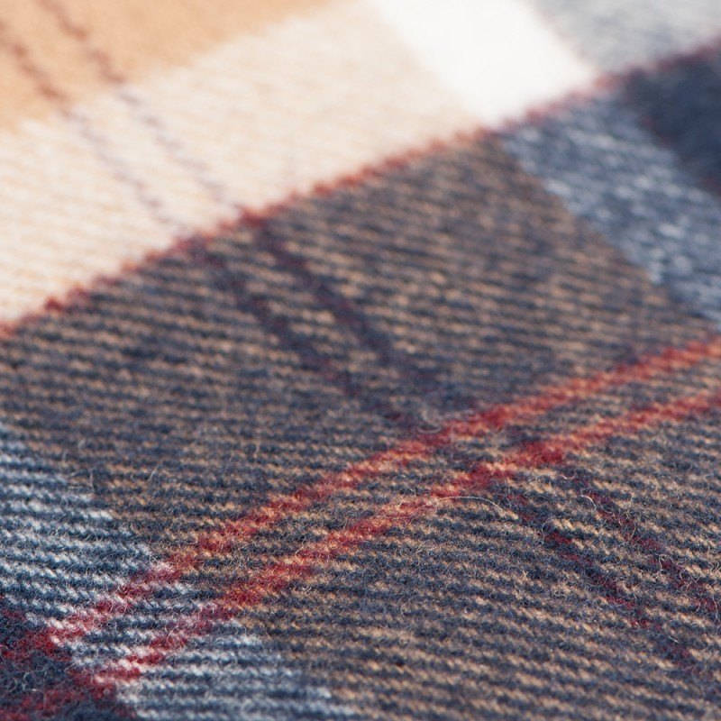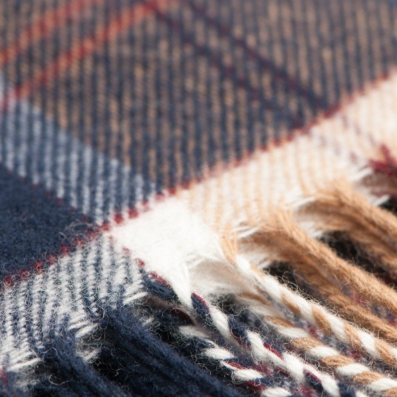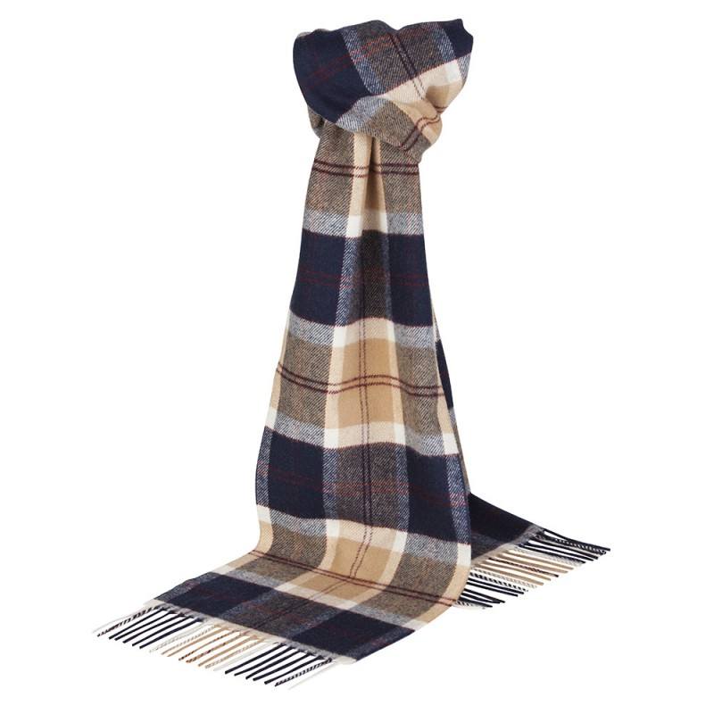 Umwerfend schön, aus 100 % Lammwolle gewebt. Das Tuch ist dunkelblau mit Schottenkaro in Weiß, Sandfarben und Kastanienfarben. Das Tuch kann sowohl von Männern und Frauen getragen werden.